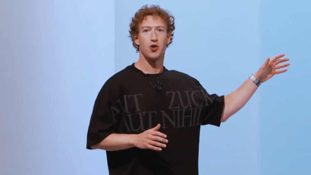 Yes, that’s right, readers. This is Mark Zuckerberg, CEO of Meta, at a ‘Meta Connect’ event back in September 2024. He’s wearing a t-shirt that looks rather familiar. Except his reads AUT ZUCK AUT NIHIL, which translates roughly as ‘Either Zuck or nothing.’